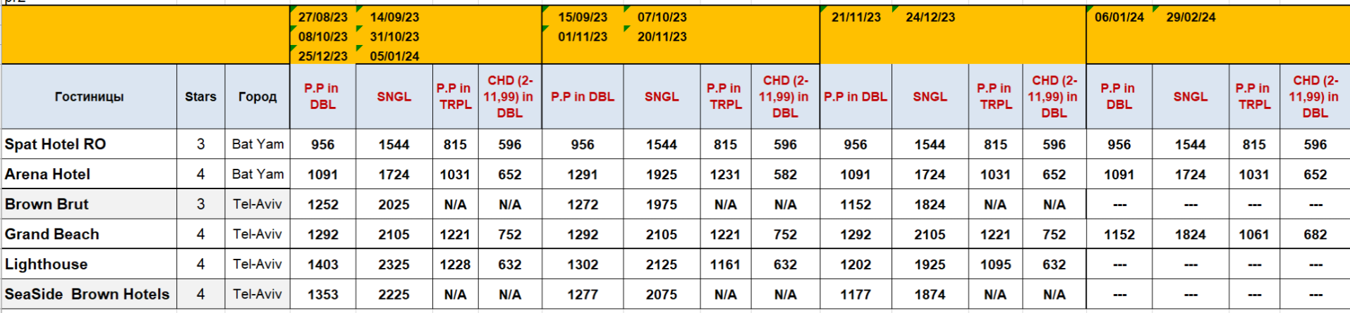 - Цены указаны только для туристов - граждане Израиля, в том числе граждане с двойным гражданством, обязаны платить НДС в размере 17% от опубликованных цен.